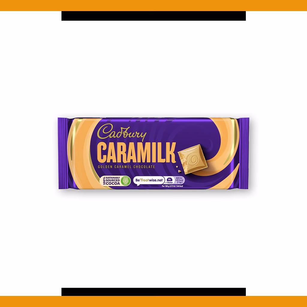 The Cadbury Caramilk bar is a uniquely crafted golden blend of caramelised white chocolate which is sourced from 100% sustainable cocoa.